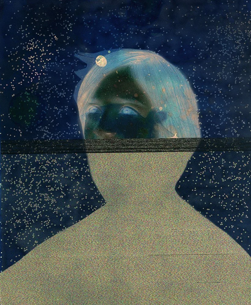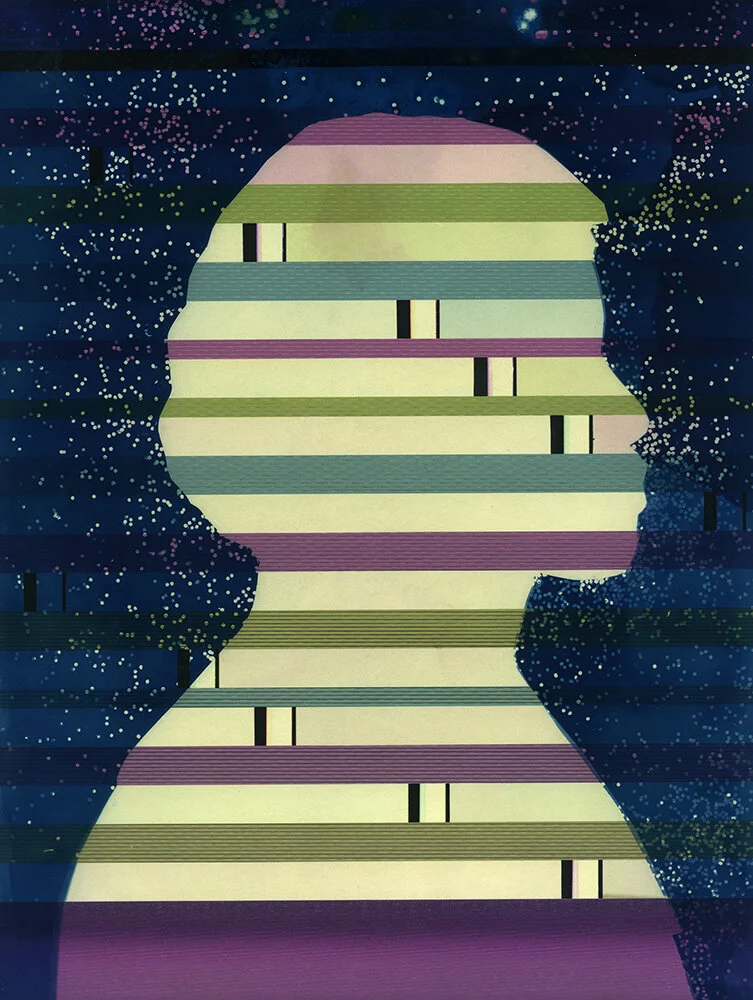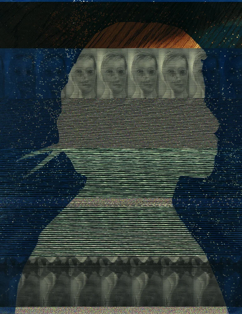 As an analog photographer, rather than let the machine have the last word, I have cyanotyped over my damaged digital scans. I use silhouettes of portraits from my archives as a way to conceal and reveal the corruption. By using historical processes to create a physical object, I guarantee that this image will not be lost in the current clash between the digital file and the materiality of a photographic print.
